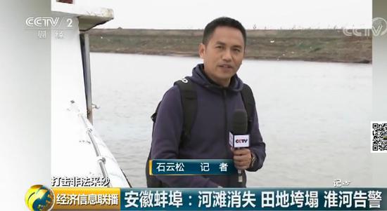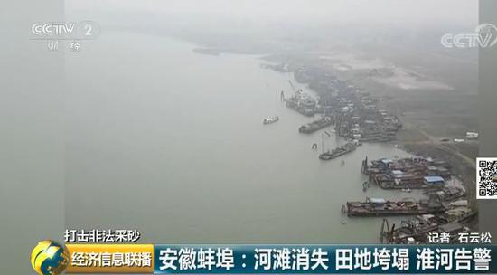 央视记者 石云松:在淮河边上一个临时堆放河砂的砂场,里面的所有河砂都是来自旁边的淮河。非法采砂人员一般会选择在夜晚,或者凌晨在淮河里非法采砂,通过运输船运到河边,再堆积到这个地方,这里成为他们非法交易场所或者临时的中转站。