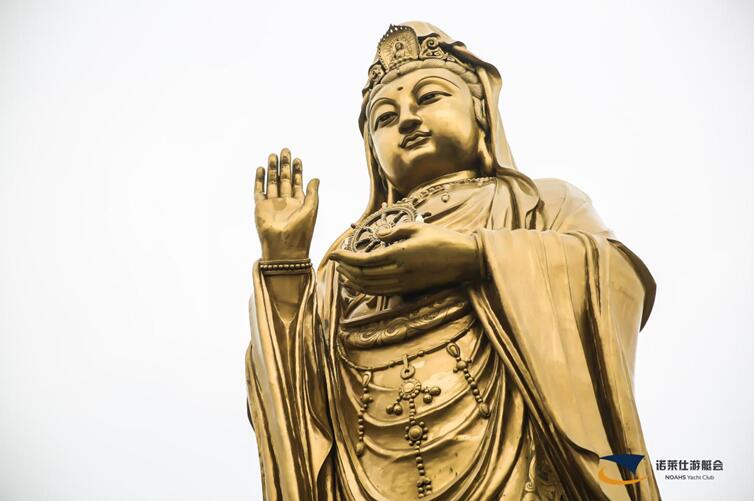 3月21日,NYC会员考察团乘坐由普陀山国际游艇会准备的豪华游艇前往普陀山,体验别样的礼佛之旅,于南海观音立像前“海上拜观音”。
