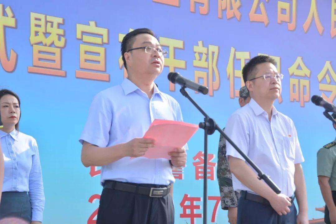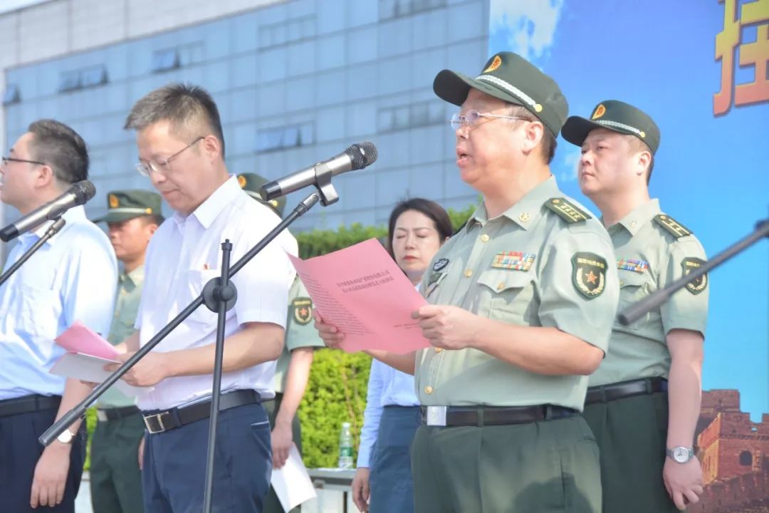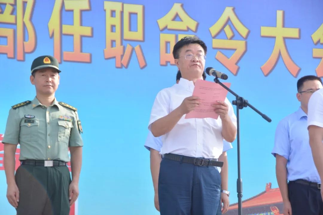 ▲市政府副秘书长蒋集政宣读武装干部任职命令
