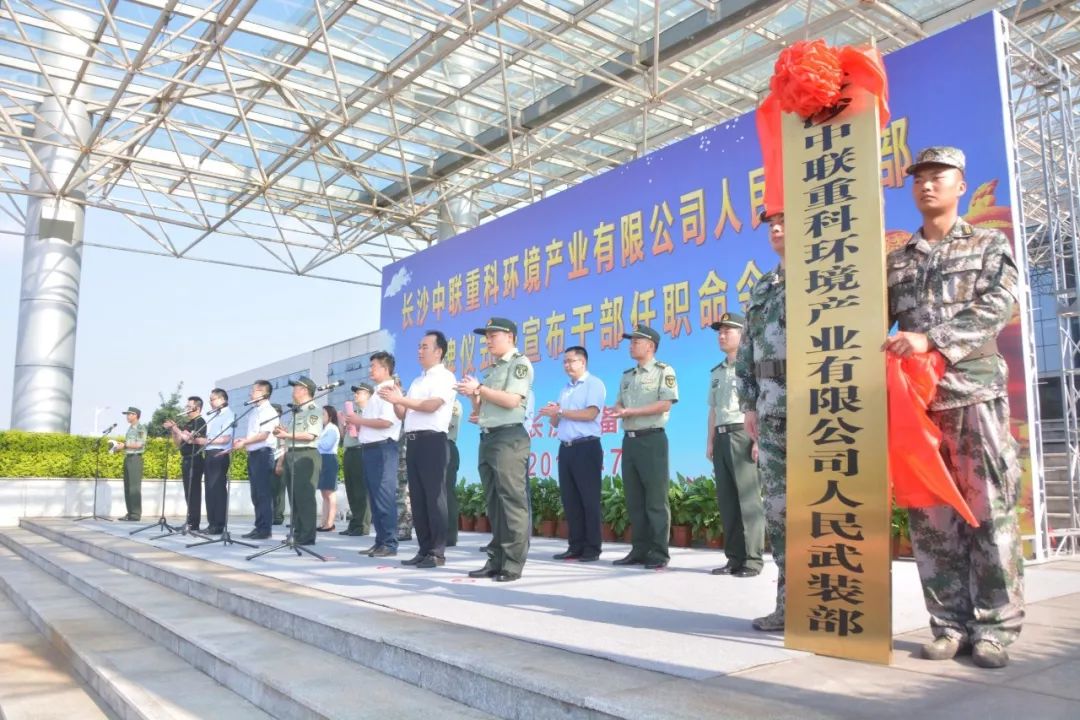 7月23日,长沙中联重科环境产业有限公司人民武装部挂牌仪式暨宣布干部任职命令大会在中联环境园区内隆重举行。长沙市委常委、警备区政委曹友华,市政府副秘书长、办公厅主任蒋集政,岳麓区政府常务副区长蔡锋,高新区党工委委员、总工会主席杨金林等领导出席了授牌仪式。
