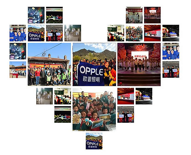 多年来欧普照明一直积极践行企业社会责任,开展全球范围内的公益性活动。2016年,向河北张家口贫困家庭捐助健康的照明产品;2017年,为斯里兰卡抗洪救灾;2018年,通过“爱不止步”50公里徒步活动,为山区学校及贫困家庭汇集近125万元等价的照明产品……