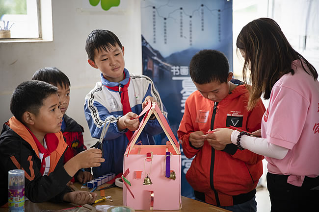 本次活动欧普照明志愿者为云南当地的26名学生准备了丰富多样的知识课程,包括绘画、唱歌、自然等,希望能通过志愿者的生动讲解来弥补当地师资力量匮乏的情况,让孩子们学习到更丰富的知识,进一步激发他们的好奇心和探索欲。