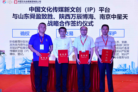 推介会上,中传新文创(IP)平台分别与山东舜盈致胜、南京中星天、陕西万辰博海签署战略合作协议。签约双方将携手开展相关企业在知识产权确权、交易、保护方面的工作,共同为当地文旅行政部门和文化市场综合执法机构打击侵权盗版提供包括知识产权案件线索、证据固定、知识产权确权在内的专业服务与技术支撑。