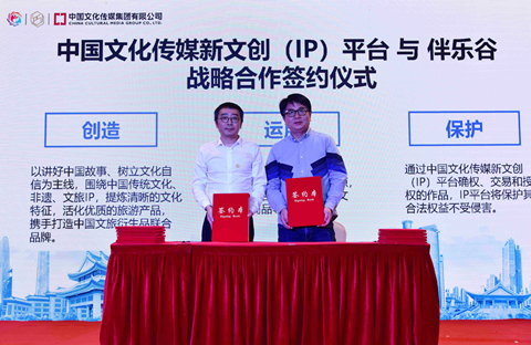 签约环节,中传新文创(IP)平台分别与末那工作室、伴乐谷就相关文旅衍生产品的创作、推广、销售签署战略合作协议。签约双方将以讲好中国故事、树立文化自信为主线,围绕中国传统文化、非遗、文旅IP,与世界各地优秀的艺术家和内容创作者共同提炼清晰的文化特征,塑造出中国原创文旅IP,活化出优质的旅游产品,携手打造能够代表中国的文旅衍生品联合品牌。