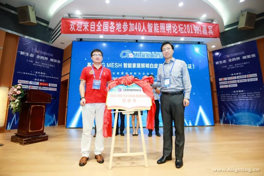 ▲欧普照明首席技术官齐晓明与阿里巴巴人工智能实验室终端总经理茹忆共同见证《SIG MESH 智能家居照明白皮书》的发布