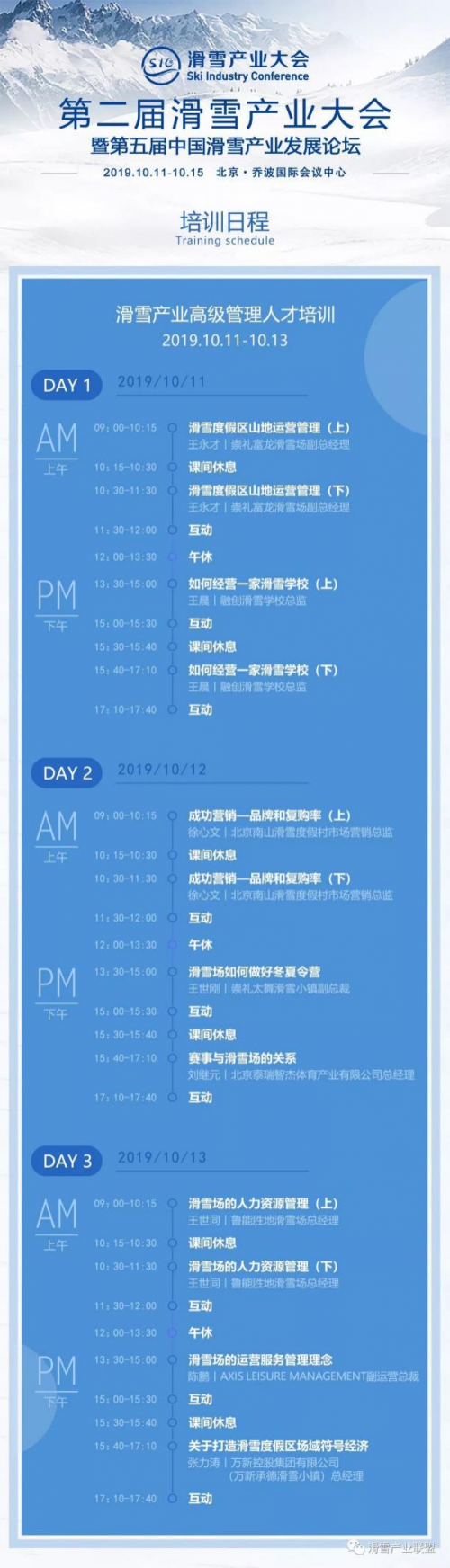 1、第三届滑雪产业高级管理人才培训班(10月11日—13日)。