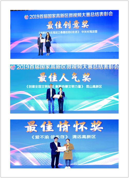 论坛上举行了首届国家高新区微视频大赛总结表彰会。会上颁发了最佳创意奖、最佳人气奖、最佳情怀奖、最佳制作奖、最佳视觉奖、最佳动画奖6个最佳奖作品,分别由中关村海淀园、昆山高新区、清远高新区、西安高新区、广州高新区、重庆高新区6家高新区获得,颁发了展示类、文化类、生活类、公益类、创新类、创业类、新闻类、生态类、科普类9大类共计66个优秀奖作品。