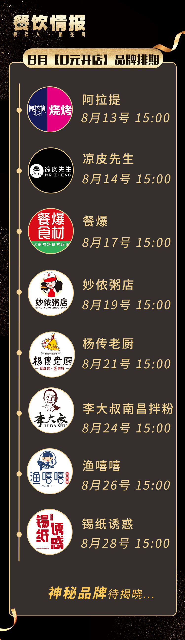 8月21日15:00,杨传老厨将入驻餐饮情报【0元开店】直播间,负责人将详解开店快速回本的经营秘诀。杨传老厨还将为本期【0元开店】幸运儿提供免除品牌费、设备费、宣传物料的超级福利。