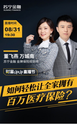 为人子女,父母是我们永远的牵挂。如何给爸妈挑保险?相信不少小伙伴都有过这样的困惑。8月31日19:30,苏宁金融财富UPUP直播节特邀苏宁金融金牌保险规划师董飞燕、万城南,跟大家聊一聊老人买保险的话题。届时登录苏宁金融APP“财富”页,或关注苏宁金融微信公众号,点击底部菜单中的“财富直播”,即可获取观看链接。