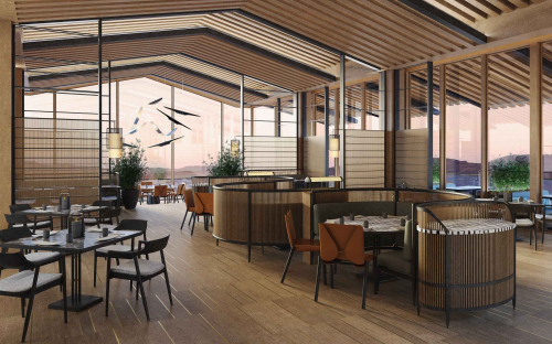 俱乐部的设计融合了日本传统建筑和当代摩登元素。室内设有让会员能浅酌一杯的酒吧,能一边眺望赛道一边品尝佳肴的餐厅,更备有能跟孩子一起安心游玩的亲子活动空间。俱乐部还设有丰富的户外活动专区,如户外游乐场、遛狗公园、适合野餐和远足的小径等。