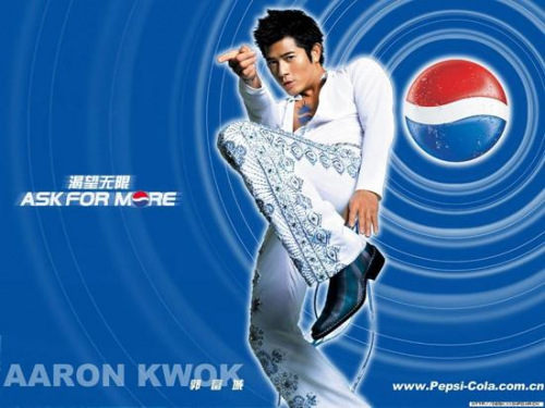 1997年,四大天王之一的郭富城代言百事可乐。他的外形健康俊朗,气质活力时尚,与百事的品牌形象相贴合。郭富城与百事合作了整整八年,为此还得到品牌特别颁发的“Music hall of fame”奖项,这个奖更是连麦当娜等国际级巨星都未曾获颁授。郭富城见证了百事可乐的两大转折:广告语从“新一代的选择”变成“渴望无限”,主色调也变成了蓝色。此后百事可乐进入蓝色时代,这一抹百事蓝成为百事可乐在人们心中独具记忆的色彩。