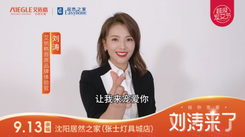 9月1日,艾依格全屋定制首席品牌体验官刘涛的VCR视频惊艳亮相,为“超级宠艾节”助阵打call!9月13日,刘涛将亲临沈阳居然之家,现场亲自送出全年钜惠大礼包,好礼加码不断,给你宠爱~