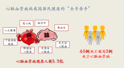 心血管病已经成为严重危害我国人民健康的重大问题。据国家心血管病中心发布的《中国心血管健康与疾病报告 2019》显示,心血管病死亡是中国人排名第一的死亡原因。“目前中国大概有3.3亿人群受心脑血管疾病困扰,每5例死亡里面有2例跟心脑血管疾病是相关的,心血管病被称为‘头号杀手’是当之无愧的。”刘健还指出,高危人群大致是由两方面原因导致的。一是与年龄相关,高龄是发生心血管疾病的重要危险因素;二是不健康的生活方式,例如吸烟、酗酒、饮食、缺乏运动等都会增加心血管疾病的发生几率。