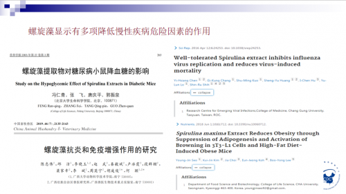 值得一提的是,与会的多位专家都在报告中指出,螺旋藻不仅蕴含丰富的营养元素,还具有防治慢病的功效。其中,中国疾病预防控制中心营养与食品安全所老年与临床营养室主任张坚还提到,在早年使用螺旋藻与多种试剂对比的动物试验中,螺旋藻具有明确的降血脂功效,同时还没有影响小鼠正常的体重增长。