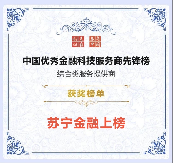 12月9日,由证券时报·券商中国主办的“2020中国金融科技先锋榜”榜单出炉,苏宁金融荣登中国优秀金融科技服务商先锋榜。