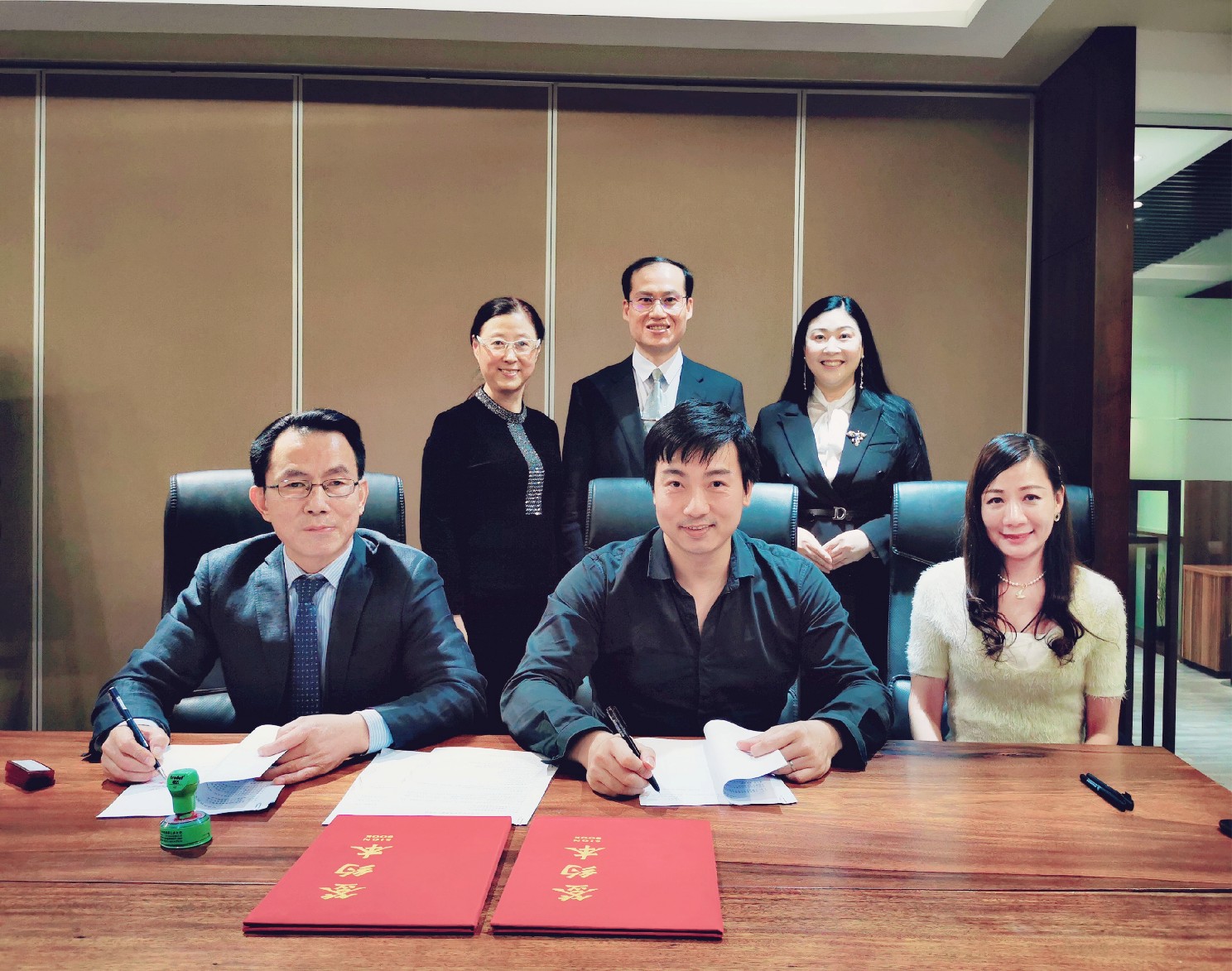 前排左一为世界金控法人代表盛延平先生,中间为红万斗公司董事长莫严迪先生,右一为红万斗公司首席执行官唐艺鸣女士