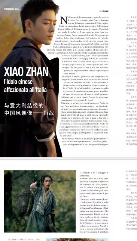 意大利《世界中国》杂志隶属于中国新闻周刊,是中国文化海外输出的重要窗口,肖战主演的《陈情令》和《诛仙》也是中国文化海外输出的浓重一笔。希望中国文化能让世界看到!