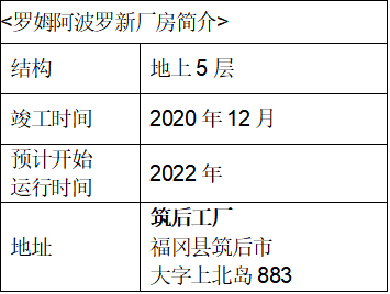 新厂房将配备融入了各种节能技术的生产设备,并使用100%可再生能源发电,是全新环保型工厂。