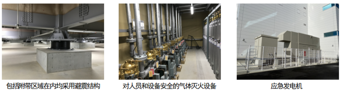 此外,作为能够应对各种灾难的工厂,除了包括附带区域在内均采用避震结构等地震对策外,还预备了浸水应对措施,并配备了气体灭火设备和应急发电机等设备。