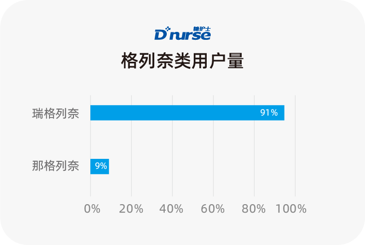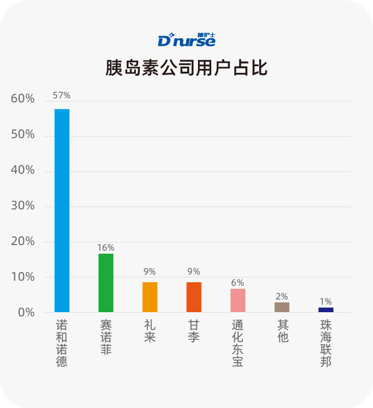 国内的甘李和通化东宝近些年表现抢眼,用户占比稳步上升,未来可期,分别排在第四、第五位。