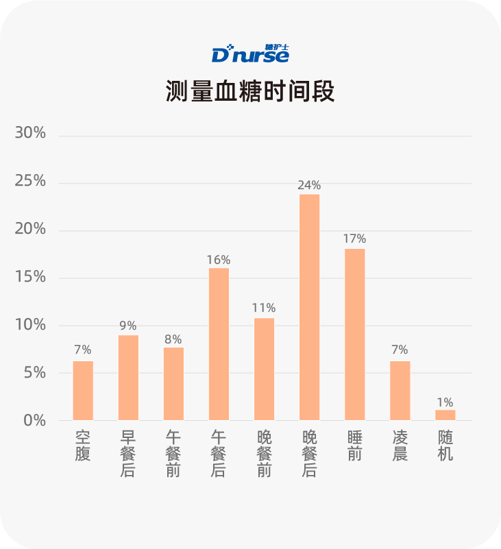 晚餐后血糖(24%)、睡前血糖(17%)、午餐后血糖(16%)排在前三位。