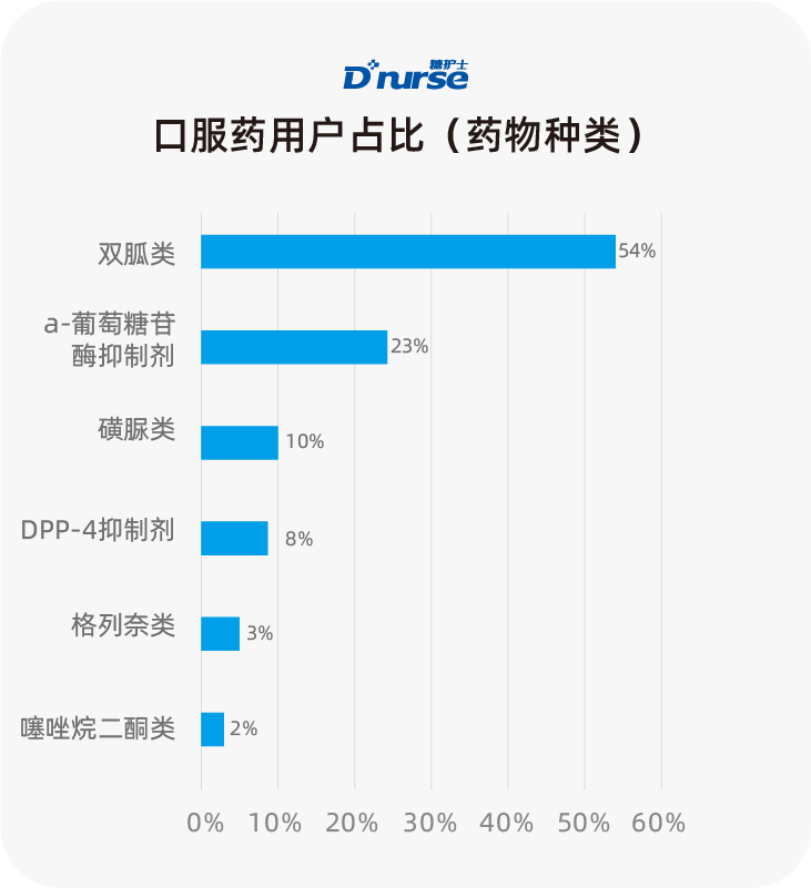 其中双胍类药物依旧是糖尿病用户的第一首选用药,占比达54%,较2016年报告49%的占比有5%的提升。