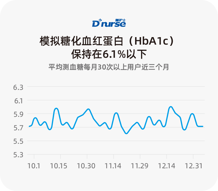 平均每月监测30次以上的用户,近3个月模拟糖化血红蛋白(HbA1c)保持在6.1%以下。