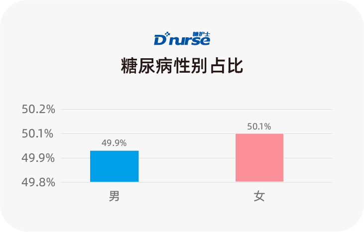 根据我国糖尿病流行特点:中国成人糖尿病患病率,男性高于女性(11.7%比10.2%)[2]。在2016年报告数据中还是男性(59%):女性(41%)。而2020年首次出现女性用户超过男性用户。