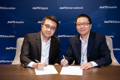 左为尚乘集团董事长兼总裁、尚乘国际创始人蔡志坚先生,右为天星数科副总裁赵卫星先生共同签署董事会决议