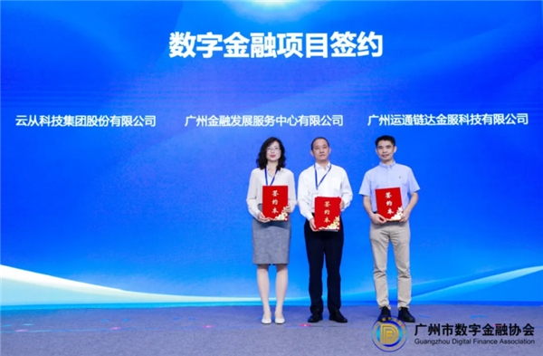 活动现场,广州市地方金融监督管理局与云从科技集团股份有限公司、中国科学院软件应用技术研究所、中国移动通信集团、中国电信股份有限公司等五个单位签订数字金融战略协议,将区块链、云计算、大数据、5G、人工智能等新技术应用在金融领域,推动广州“数字金融”建设,辐射带动大湾区数字金融生态圈发展。