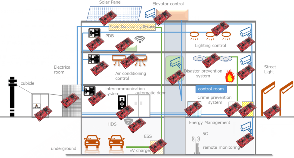 搭载SC1320A的新型P-TMFSU-041通信模块符合HD-PLC4标准,利用现有的电力线实现高速数据通信。 使用现有的电力线,无需安装新的通信电缆即可构建有线网络。