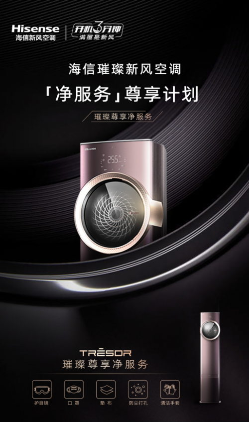 让璀璨人生从此无暇,海信空调彰显品牌力量,推出全新璀璨“净”服务,以专业、高效和优雅的服务,缔造用户尊贵安装体验。自此空调安装由“殇”变“享”,海信为空调安装树立全新范式,夯实了行业领先空气品牌的占位。