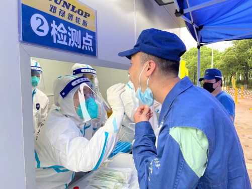 自本轮疫情发生以来,住友橡胶积极响应政府号召开展常态化疫情防控,组织多名员工参加政府组织的疫情防控志愿者培训。经过培训的员工变身“大白”,不仅有力地支援了附近各核酸检测点的工作,还在公司内部设立了检测点,为员工提供就近便捷服务。