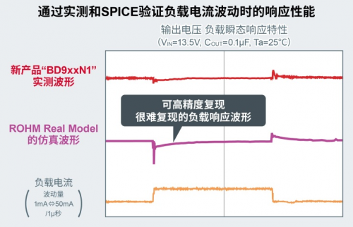 ROHM提供高精度SPICE模型“ROHM Real Model”,在新产品验证用的仿真模型中,利用ROHM自有的建模技术,忠实地再现了实际IC的电气特性和温度特性,可使仿真值与IC实物的值完全一致。通过可靠的验证,可有效防止实际试制后的返工等情况发生,有助于提高应用产品的开发效率。