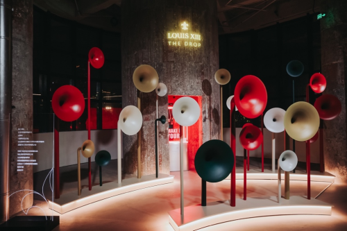 漫步至第二个体验空间,以声音为线索的艺术装置传递了来自风土的浪漫诗意。安静聆听,有风吹拂过葡萄园的沙沙声,从法国干邑地区翻越过山脉湖泊而来,任想象描绘路易十三源起风土的时光传奇,身临其境感受向往已久的自在游牧。现场宾客在有形和无形中感受到不被局限的想象力,从强烈的视觉和听觉感受延展思维纵深,感受来自群体创作的无声共鸣,以及独具一格的个性表达。