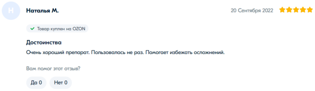 网友“娜塔莉亚·M”:“很好的药。用过很多次了。有助于避免病情转重。”