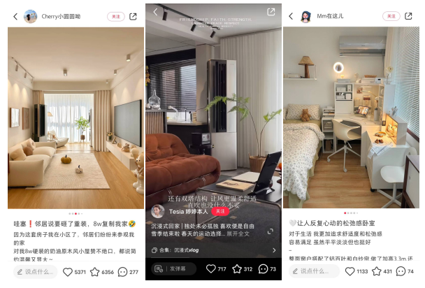 小红书平台上就有这样一群小红薯,通过笔记分享精致有格调的生活方式,表达年轻新潮的生活态度。同时,他们也习惯于在小红书站内收集家装灵感,发现新的家居好物。在小红书搜索“我的家”,相关笔记高达3100多万篇,“装修”的相关内容也有1300多万篇。