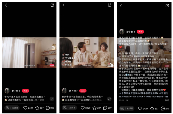 在官方内容的带动下,@Cherry小圆圆呦、@Mm在这儿、@Tesia婷婷本人也纷纷加入种草大军,从沉浸式居家、旅游vlog、家装好物分享等多场景接力种草产品,炒热话题引发更多优质UGC内容输出,进一步提升话题的丰富度,UGC内容沉淀为优质资产,为产品带来持续种草,帮助本次活动实现破圈传播。