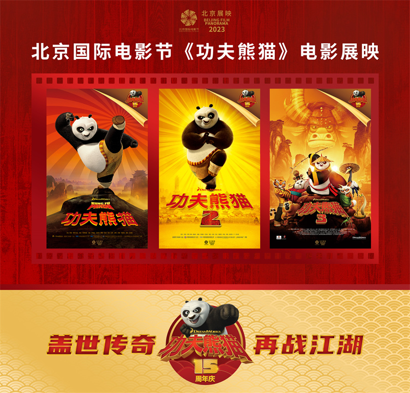 2023年4月24日,北京——2023年是环球旗下梦工场动画《功夫熊猫》系列的十五周年,在北京国际电影节期间,《功夫熊猫》三部系列电影作为北京展映嘉年华单元“系列饕餮”子单元的重磅优秀电影在电影节合作影院放映。