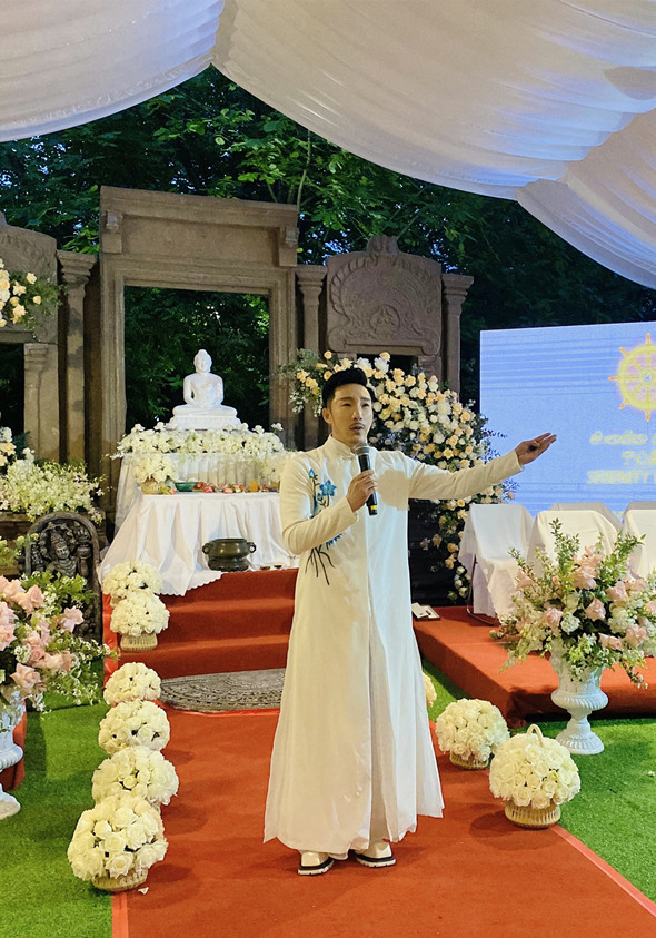 世界居士大会名誉会长、梵呗歌手佟佳霖霖用心唱诵了她的代表作品之一的《心经》,随后中国煤炭文工团歌唱演员、时尚电视台台长齐航现场演出禅意歌曲《空》,优美的旋律为本次庆典送上诚挚的祝福。