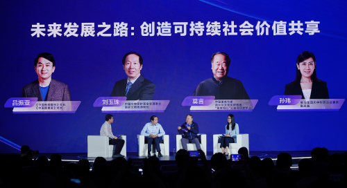 图说:莫言(右二)在峰会上分享了自己对公益的思考。