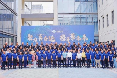 典礼现场洋溢着欢乐喜气的氛围,现场全体人员在“聚力‘喜’奋进 携手‘蕈’未来”的口号中,共同拍摄喜蕈生物落成典礼大合影。