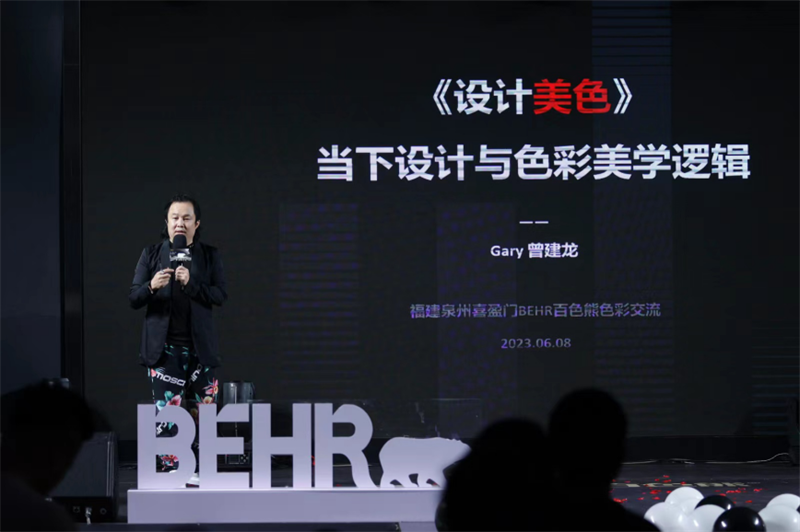 2023泉州喜盈门百色熊色彩交流活动完美收官,此次活动与百色熊众多资深设计师熊「聚」九州,一同交流色彩美学。百色熊BEHR中国区总经理Roger Leon与中国区高级市场经理Woody亲临现场,实力演绎百色熊玩色理念,特邀著名设计师曾建龙先生主讲《设计美色》,传递当代设计理念下的场域精神塑造与美学逻辑。更有12位色彩大使强势助阵,共同探讨美学修为,碰撞创意,让色彩纷飞,一起打破单调,跃入这场色彩盛宴。