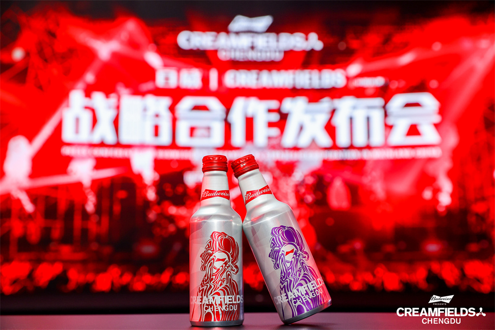 在现场超燃气氛下,百威亚太首席市场营销官车祁与Live Nation Electronic Asia董事总经理Jim Wong一同惊喜揭晓百威·Creamfields限量版包装铝罐:瓶身之上,摩登简约的流动线条模拟百威啤酒的绵密气泡,勾勒出电音爱好者沉浸音乐的酣畅剪影,更有“CREAMFIELDS CHENGDU”字样叠盖其上,篆刻百威·Creamfields电音节首站的城市印记。百威红的特别版包装设计,营造出热情洋溢的视觉效果;而紫色版则朦胧神秘,引人无限遐想首站电音节上的精彩瞬间。