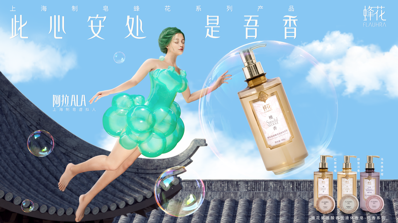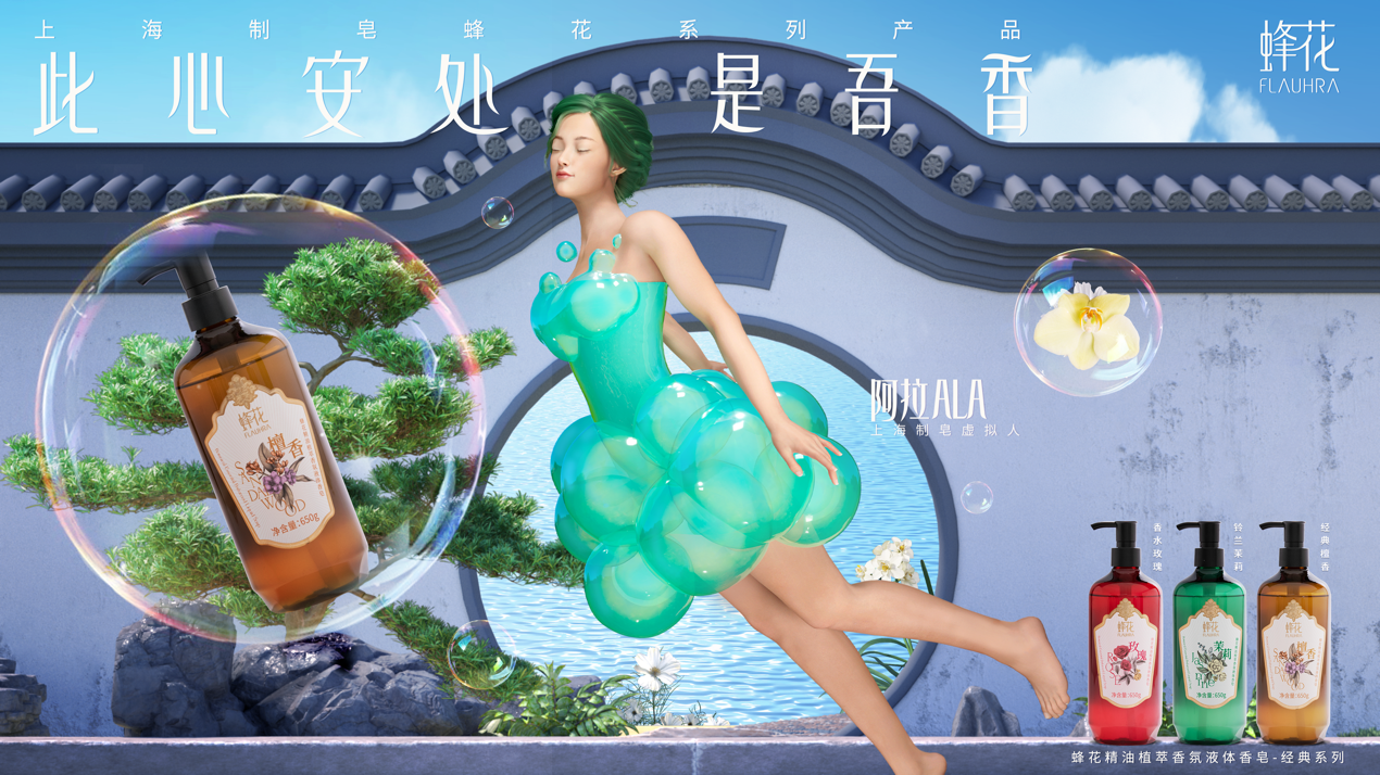 蜂花携手上海制皂从泡泡中诞生的灵动活泼、娇俏可人的虚拟人阿拉ALA。