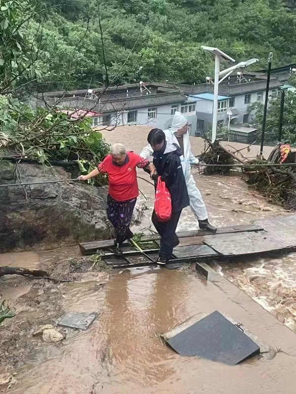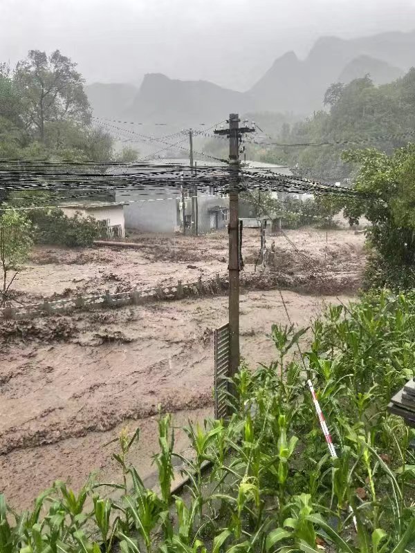 7月31日早上天刚亮,包村领导任全顺用他手机上微弱的信号接收到了乡政府发来的报警求救信息:西坡有塌方。我们逆流而上驶向塌方现场,公路变成了“黄河”,越野汽车俨然一艘冲锋舟。我们迅速将村民转移到腾马酒店。