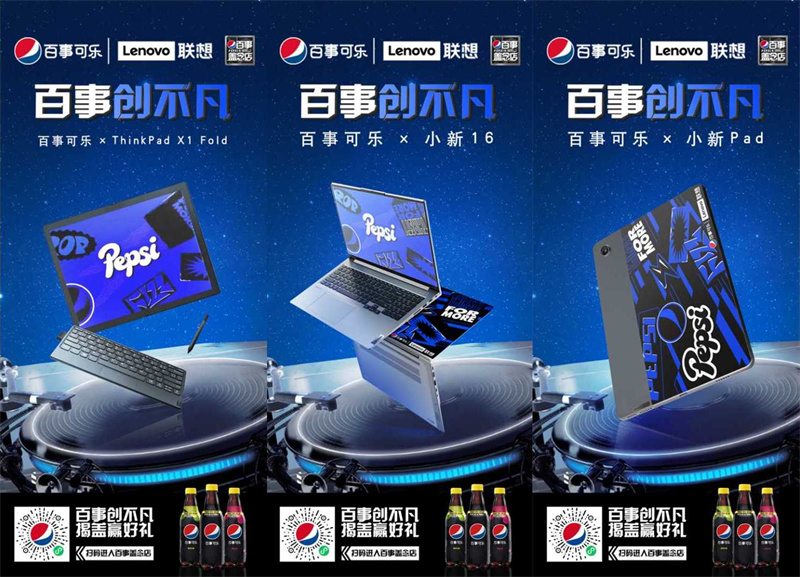 诞生于2017年的百事盖念店,孜孜探索当代青年热爱内核,逐步发展成为品牌潮流文化代表IP。今年,百事首次跨界科技巨头联想Thinkpad X 1 Fold、小新16以及小新Pad三款热门产品,推出限定潮流科技单品,将品牌标志性的经典百事蓝和LOGO元素融入定制化外壳和开机动画设计,结合富有张力的图形和字体,带来动态感十足的视觉效果,衍生动画更是趣味横生,打破了传统科技单调、沉闷的固有印象,成为Z世代表达态度的新式潮流载体。而三款单品在日常生活和工作场景中的深度应用,也为年轻生活方式注入澎湃创造活力,持续探索未来边界。