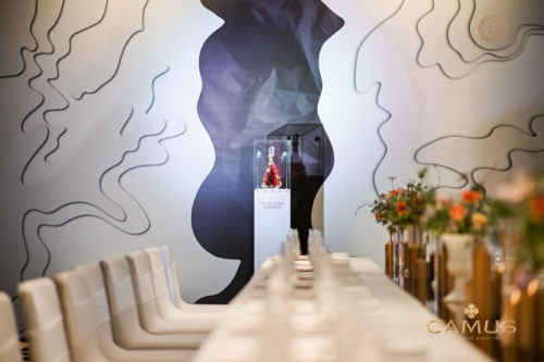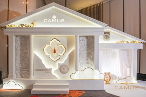 舞会现场特别呈现两大展示区域,展示卡慕CUVEE 4.186及多款干邑:以古罗马神殿为灵感,将酒瓶放置于“神殿”上的卡慕金花中,宛如古代神殿中的稀世珍宝。
