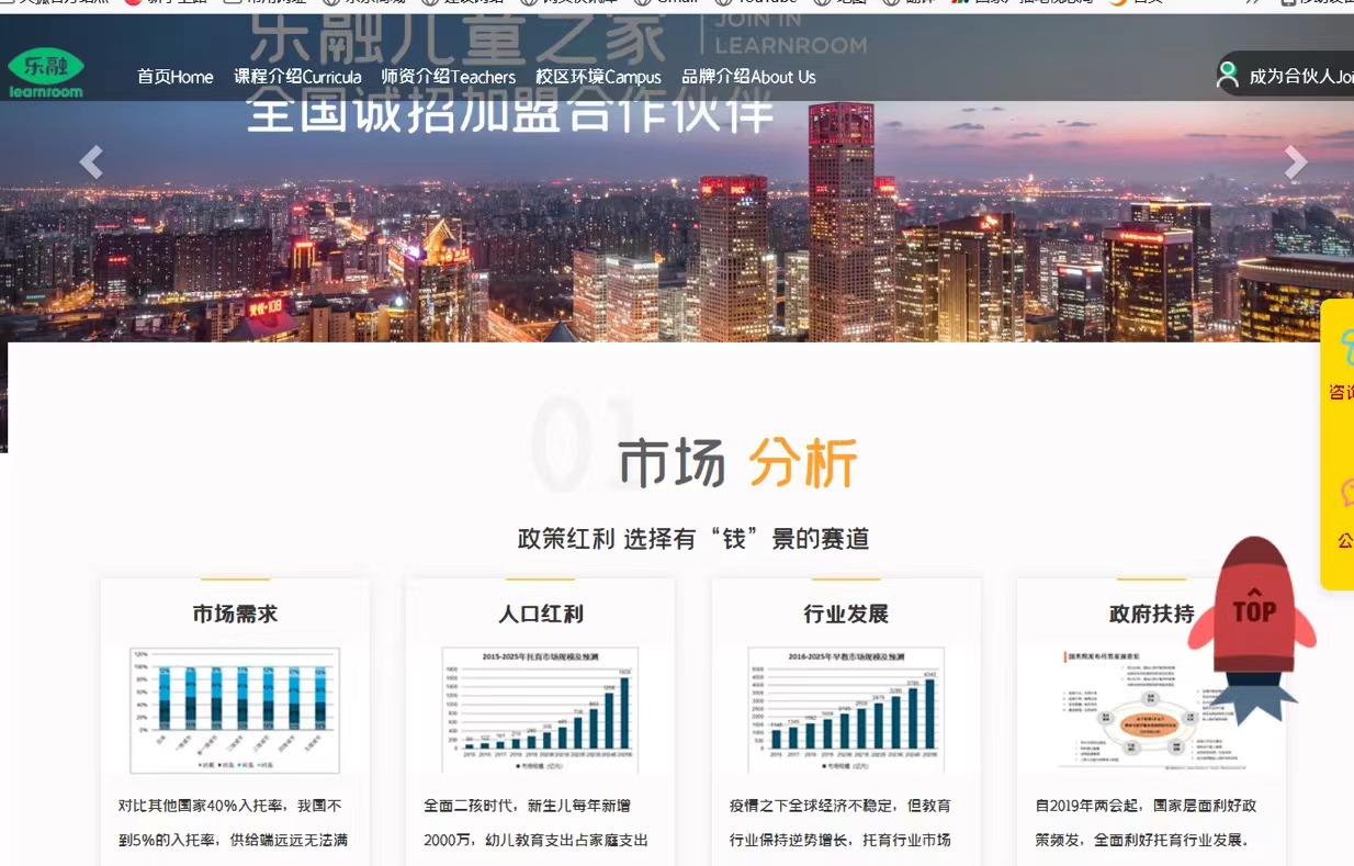 乐融儿童之家总部(北京乐融教育咨询有限公司)自成立以来,先后获取“北京市托育服务研学基地”“京津冀托幼一体化产教融合共同体理事单位”等重要成就,并持续在线上线下持续对其品牌进行宣传推广,甚至在官网中提出“政策红利 选择有‘钱’景的赛道”这一市场分析论述,用以吸引更多合伙人加盟,不断扩大线下市场。