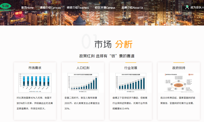 据相关报道,此次乐融儿童之家西红门及上地校区发生关门停课事件,已经不是乐融儿童之家首次出问题。在2022年5月底,乐融儿童之家北京亦庄校区就曾发生过类似事件。而网络调查发现,近年来,乐融儿童之家品牌在全国各地已经接二连三多次发生类似情况,且基本上都发生在加盟店。到底是什么原因导致?是乐融儿童之家品牌的加盟形式存在问题?还是乐融对于加盟商的种种明显开脱行为采取默许态度呢?这种不顾消费者死活的加盟形式是否还有存在的必要和价值很值得人深思。另外,更引人关注的是,乐融总部官网信息显示,乐融儿童之家在全国招募合作伙伴,并在市场分析板块中提出“政策红利 选择有‘钱’景的赛道”这一理念,对于托育事业,称之为有“钱”景的行业,也实在太为露骨。但这种所谓的“钱”景千万不能是收钱后就跑路或者关门。